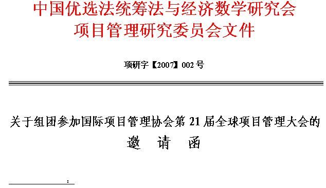 无论您是否参加本次会议,欢迎您为本次大会投稿,本次大会论文全文的截稿日期是2007年2月28日,相关会议信息请浏览大会网站www.ipma2007.com。