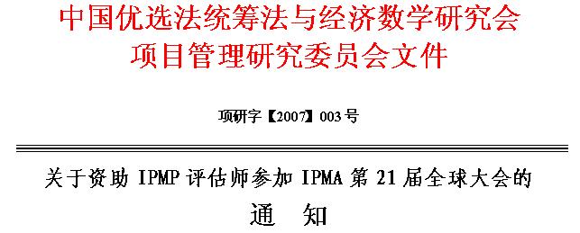 关于资助IPMP评估师参加IPMA第21届全球大会的通知