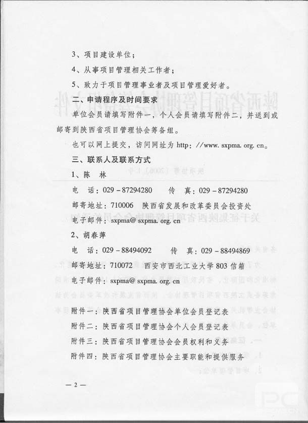附件一: 陕西省项目管理协会单位会员登记表(下载) 附件二: 陕西省项目管理协会个人会员登记表(下载) 附件三: 陕西省项目管理协会会员权利和义务(下载) 附件三: 陕西省项目管理协会主要职能和提供服务(下载)